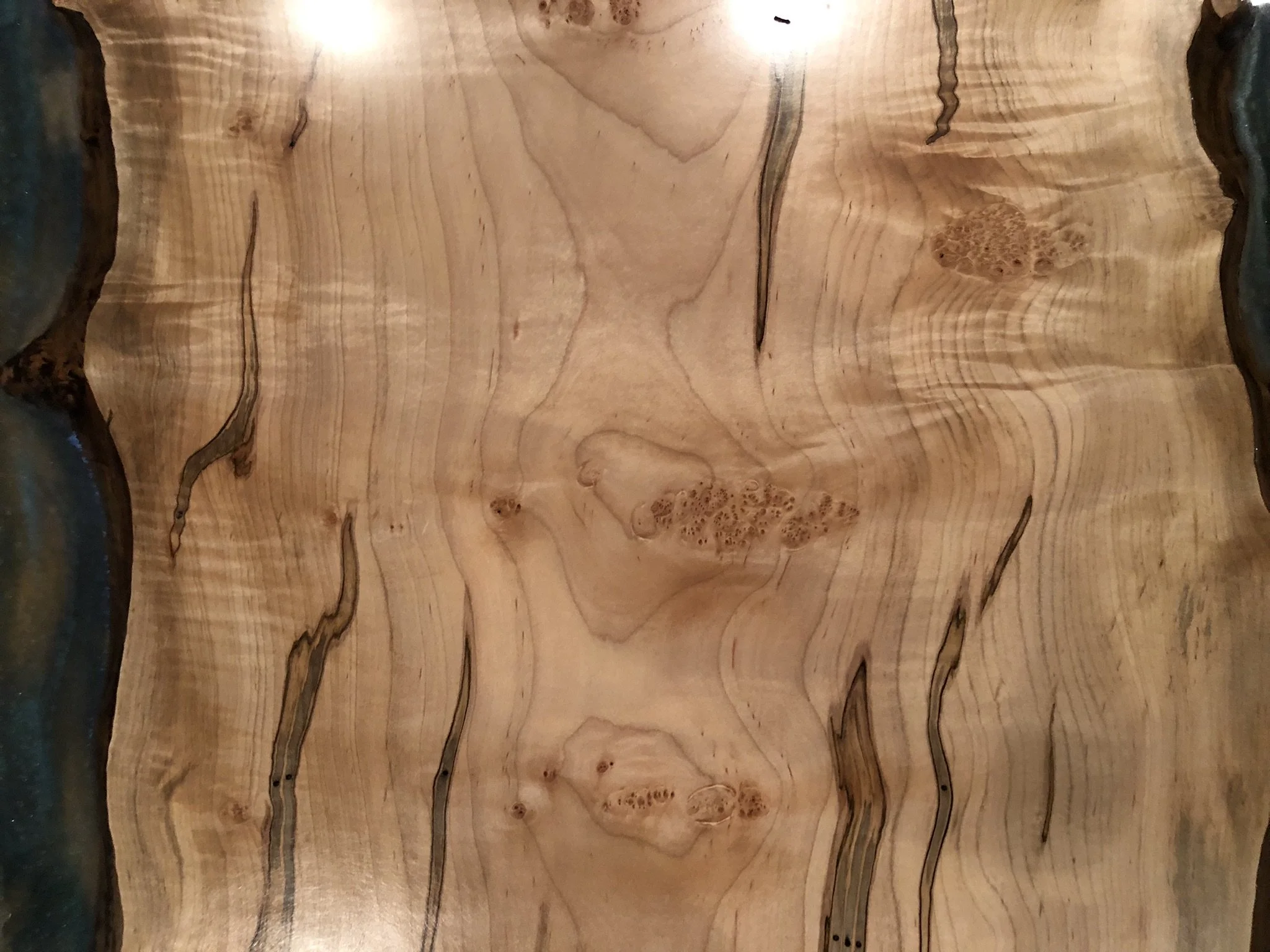 The distinctive figuring of Ambrosia Maple comes from an “ambrosial fungus” that is introduced into the heartwood by Ambrosia beetles that bore into the tree to lay their eggs.